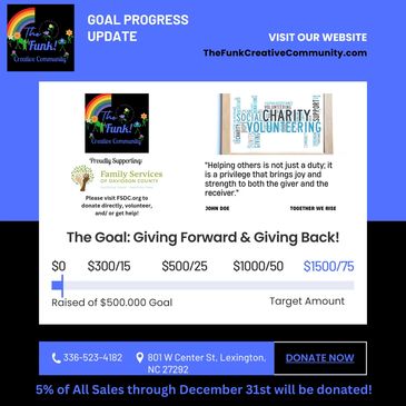 During the month of December, the Giving Goal is to earn at least $1500 in income, allowing us to donate at least $75 to Family Services of Davidon County, Inc.